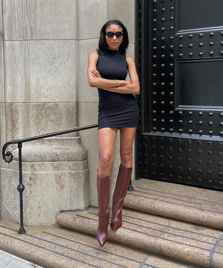 The epitome of wardrobe staple. There’s something undeniably timeless about AUGGIE’s sleek silhouette. Sustainably crafted in classic leather or rich suede, this knee-high heeled boot pairs well with warmer layers and sweater dresses.