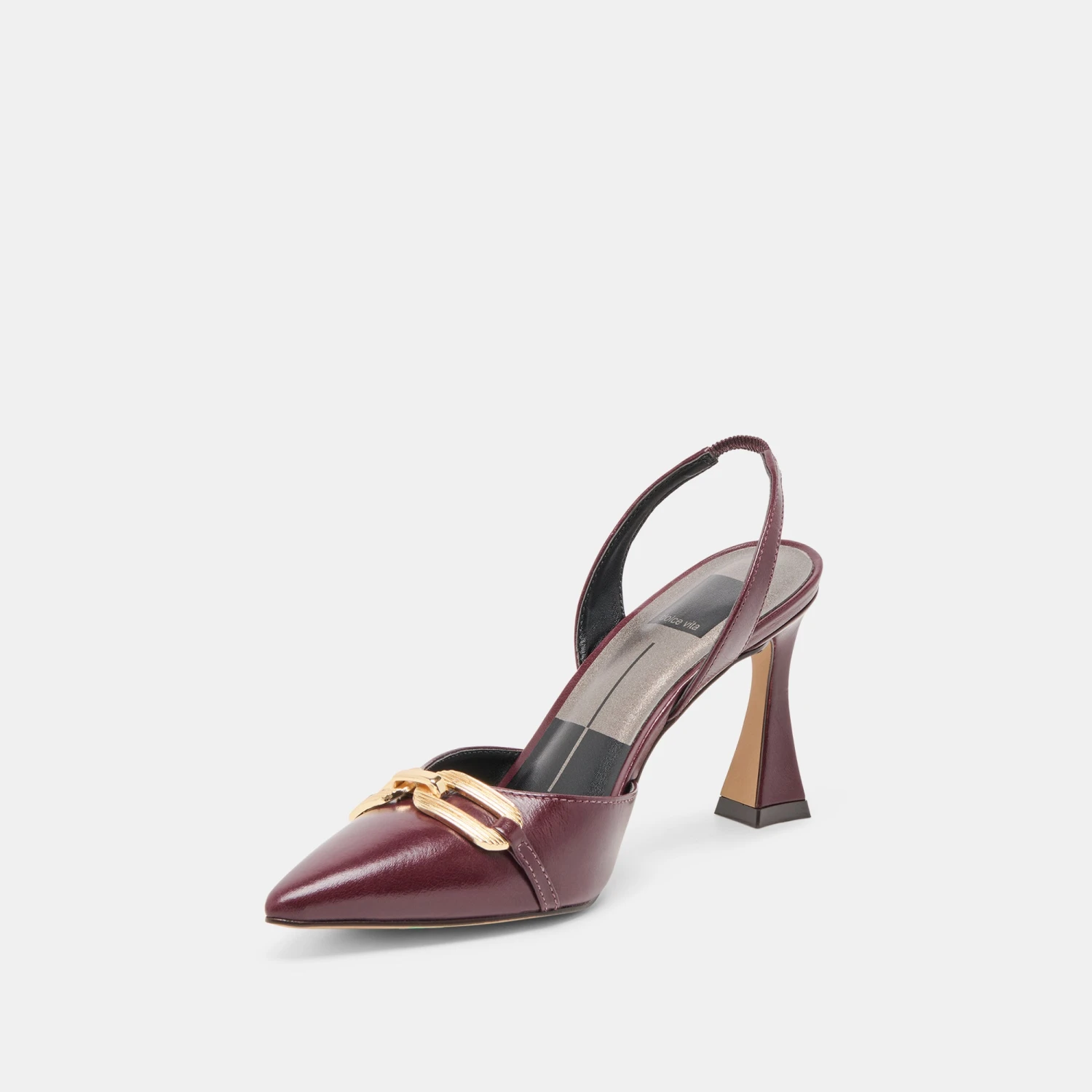 MALIK joins the slingback resurgence with ultra-sophisticated details and eye-catching textures. Her exaggerated tapered heel and the gold metal detailing topping her pointed toe infuse vintage flair into your office or formal looks.